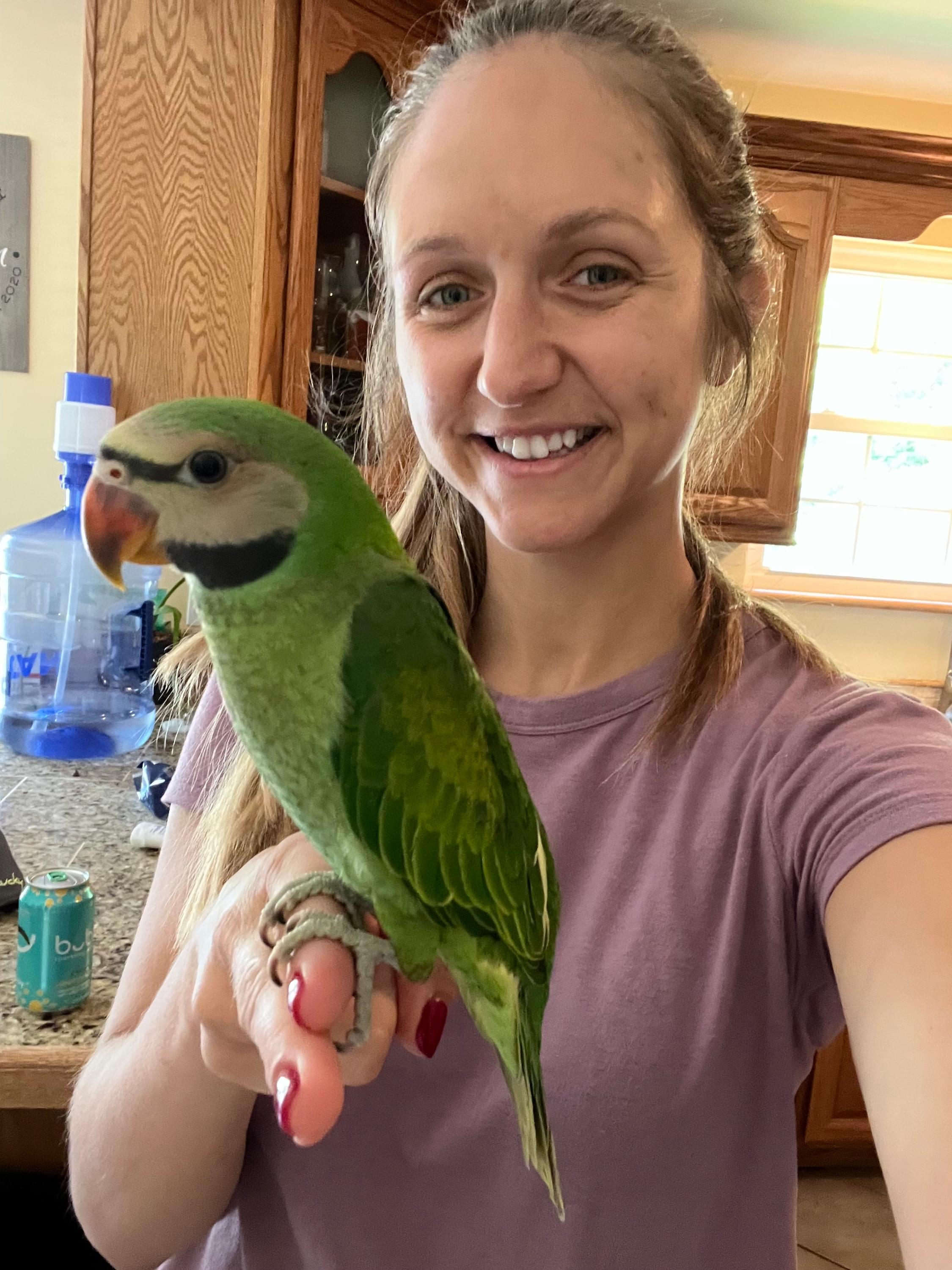 They say this kind of parrot makes a great pet and has a sweet, outgoing personality. which we're already seeing!